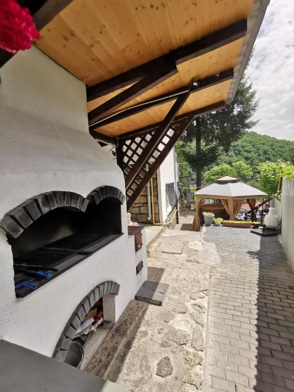 Amplasata la doar 50 m de Aqua Park Mirajul Oltului,18 km de Ramnicu Valcea, Pensiunea Casa Aurora din Calimanesti va invita sa va petreceti sejurul si vacantele intr-un decor linistitor, confortabil si elegant, chiar in centrul statiunii. Aerul curat si peisajul imbietor iti ofera cu siguranta un sejur de neuitat, fiind un loc nemaipomenit pentru relaxare. Varful muntelui Cozia, raul Olt cat si Insula Ostrov se pot observa cu usurinta atat din interiorul pensiunii cat si din curtea sa. In jurul statiunii se afla numeroase atractii turistice: Manastirea Turnu (3 km.), Manastirea Cozia (2 km), Schitul Ostrov (500 m), Parcul National Cozia cat si Manastirea Frasinei ce se afla in drum spre Ramnicu Valcea si multe alte atractii. Statiunea este renumita mai ales pentru numeroasele bai termale, baze de tratamanet, izvoare naturale pentru diferite afectiuni.
