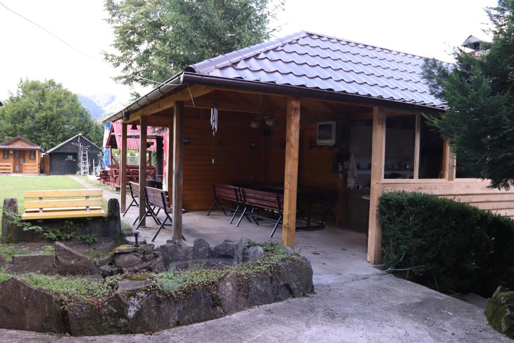 Situated 18 km from Bicaz Dam, Casute Tarcau features accommodation with a garden, a terrace and a shared kitchen for your convenience. A balcony with mountain views is offered in every unit. The nearest airport is Bacau International Airport, 94 km from the lodge.